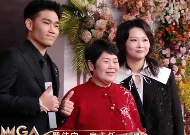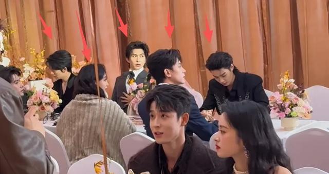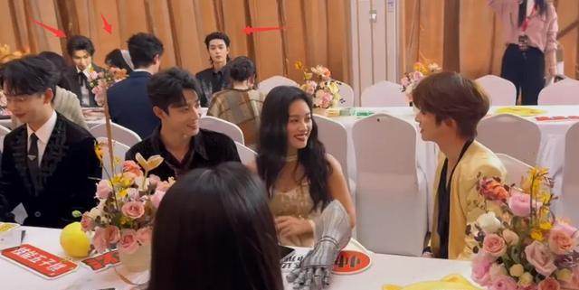 红毯即将开始时,主办方为艺人准备了休息室。从直播镜头能看到,后台看似其乐融融,但其实泾渭分明。拍长剧和脱口秀的艺人们,全都聚在前排几张桌子。而短剧艺人被分配到最后一排,且全程和其他明星零交流。