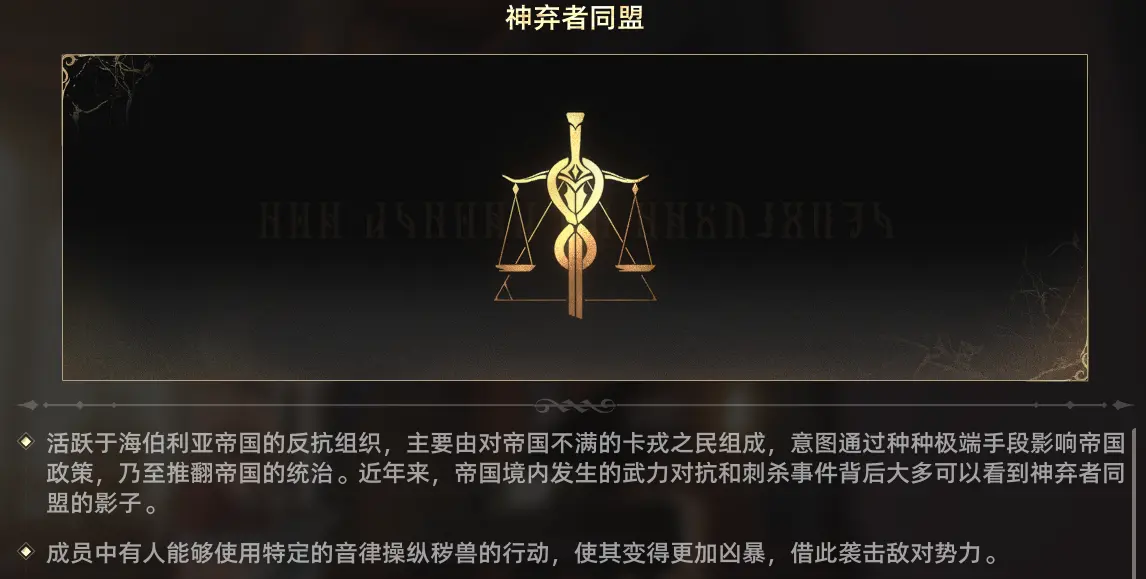 可想而知卡戎这个种族在帝国的冰天雪地下生存多么艰难,来到冰湖城遇见的少女玛尔洁,在寒风下衣不遮体,生活只能靠翻人类的垃圾桶,在这样的环境下卡戎之民往往选择抱团取暖,神弃者同盟便是卡戎中不甘命运反抗的团体,带着愤怒与仇恨尝试向人类复仇,然而这样做的处境只是让城内的卡戎们更加被人唾弃罢了。
