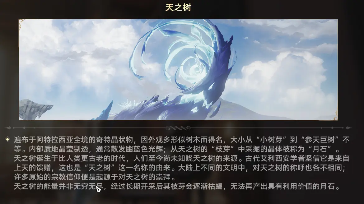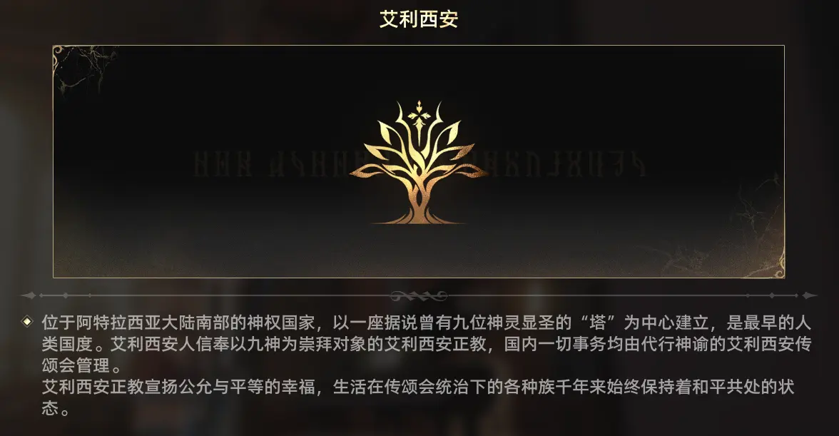在很久以前的世界之初,这片大陆四处生长着一种奇特的晶状物,外形似树而得名天之树,其果实晶莹剔透的“月石”推动着文明的诞生,最早坐落在大陆南方的人类国度艾利西安在拥护月石为神赐的神权下诞生,他们认为月石来自古早的九位神明,有神信者自然也有无信者,另一些人对天之树的态度更为务实,例如研究月石促进科技发展的炼金术师,随着神信者越来越多,整个国家的一切事物都渐渐由神明所谓的代行者“艾莉西安传颂会”管理。神明的阴影逐渐压抑了进步,随着国家阶级的固化,无信者在神明的国度每一步都万分艰难,最终因无法忍受而抛弃信仰的人们集结成群,从温暖的南方一路北上想要开辟属于自己的新世界。