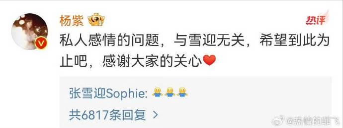 最终,杨紫深夜留言澄清“与雪迎无关”。