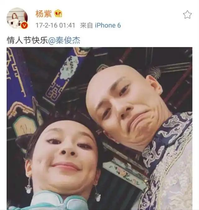 那年2月16日情人节,杨紫率先晒出两人的古装搞怪合照,配文 “情人节快乐”。